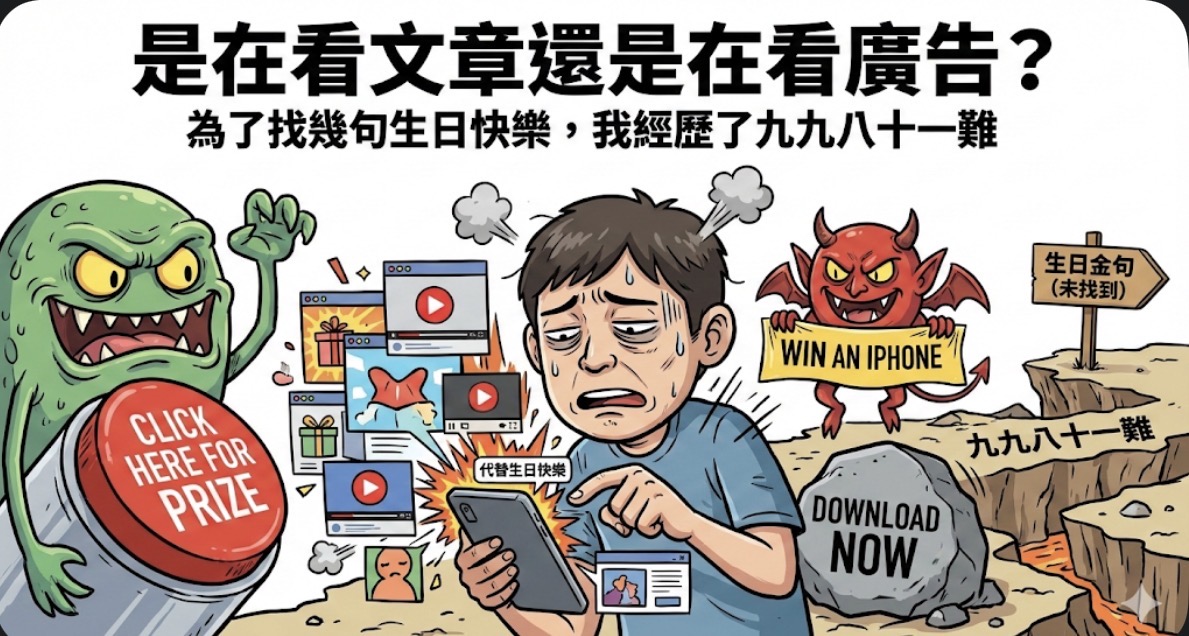 是在看文章還是在看廣告?為了找幾句生日快樂,我經歷了九九八十一難