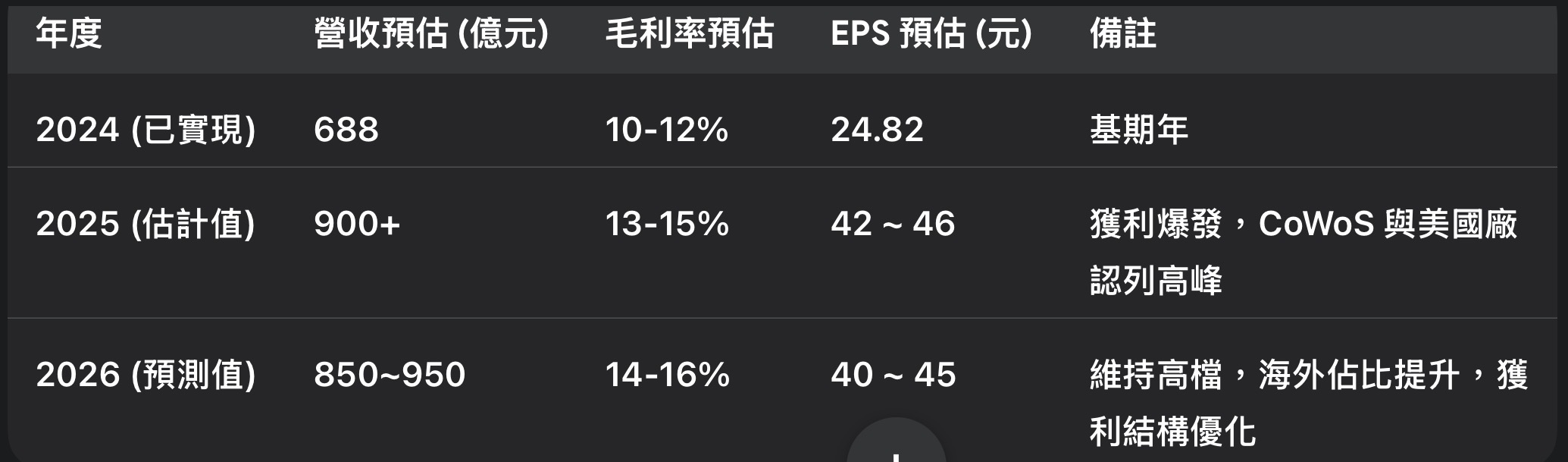 • 風險: 需留意台積電海外建廠進度是否延宕(如美國缺工問題),以及匯率波動對毛利的影響。