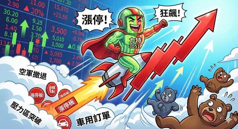 【台股驚魂】空軍慘遭血洗!力特(3051)再鎖漲停,車用「爆單」點火,下一站看「這個價位」!