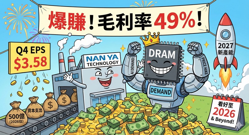 各位股民朋友們,扶好你們的眼鏡!記憶體大廠南亞科 (2408) 公布的 2025 Q4 財報簡直是「核彈級」的亮眼,直接用數據告訴市場:DRAM 的春天不只來了,還是盛夏!