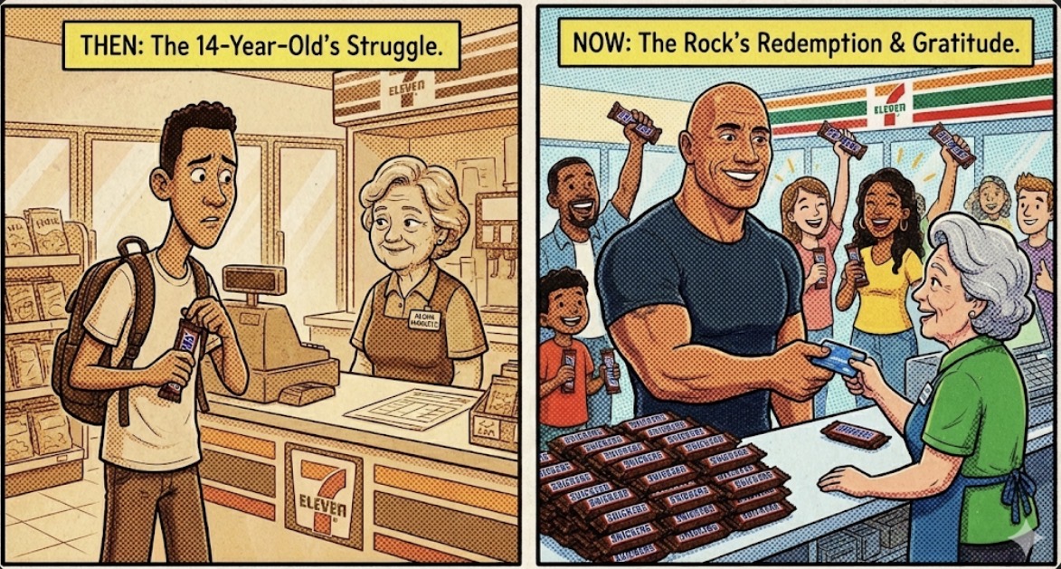 • 起因: 巨石強森重返這家他青少年時期最常光顧的超商。