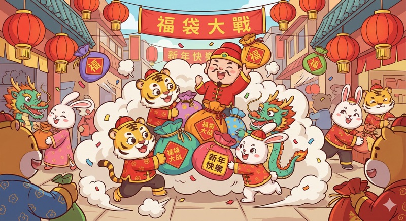 • 走「買福袋抽大獎」模式,初一至初三期間購買指定品牌福袋,憑發票參加抽獎。