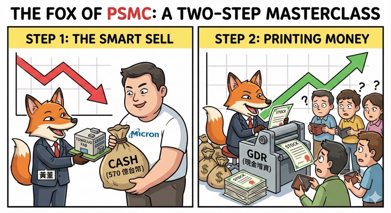 【股市鬼故事】黃董的教科書級操作:賣廠利多噴出後秒增資?拆解力積電這波「連環計」背後的真相