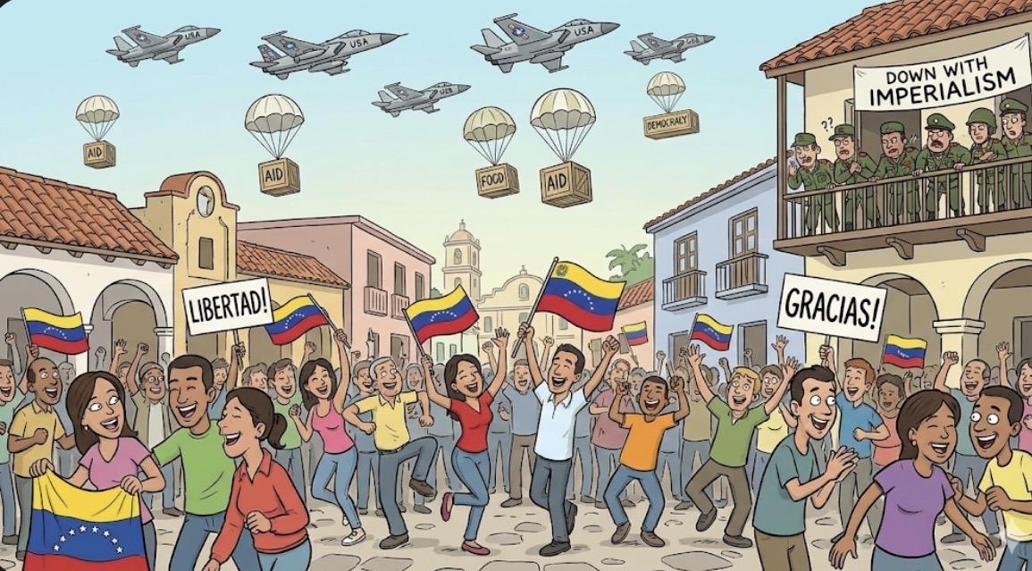 近期委內瑞拉局勢升溫,當傳出有外部力量(被馬杜羅政府指控為「美國帝國主義」或僱傭兵)試圖介入甚至推翻政權時,我們看到的不是全民皆兵的抵抗,而是許多民眾走上街頭,甚至在社群媒體上出現了近乎「慶祝」的詭異氛圍。