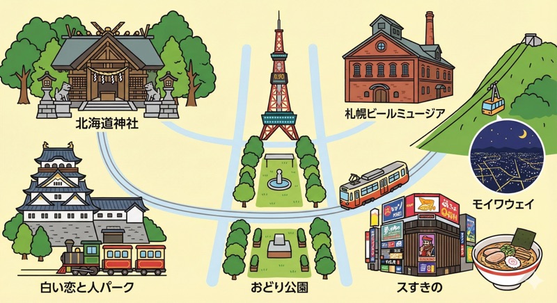 札幌市區景點集中,大通公園周邊多可步行抵達,遠程則依賴地鐵或市電,交通對親子旅客非常友善。